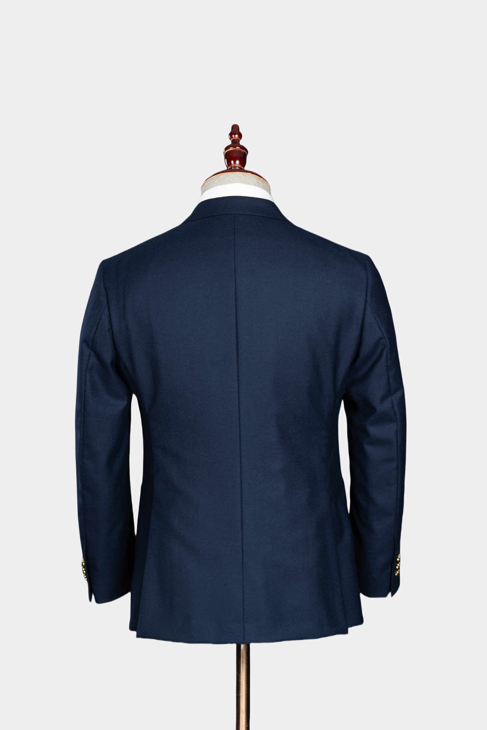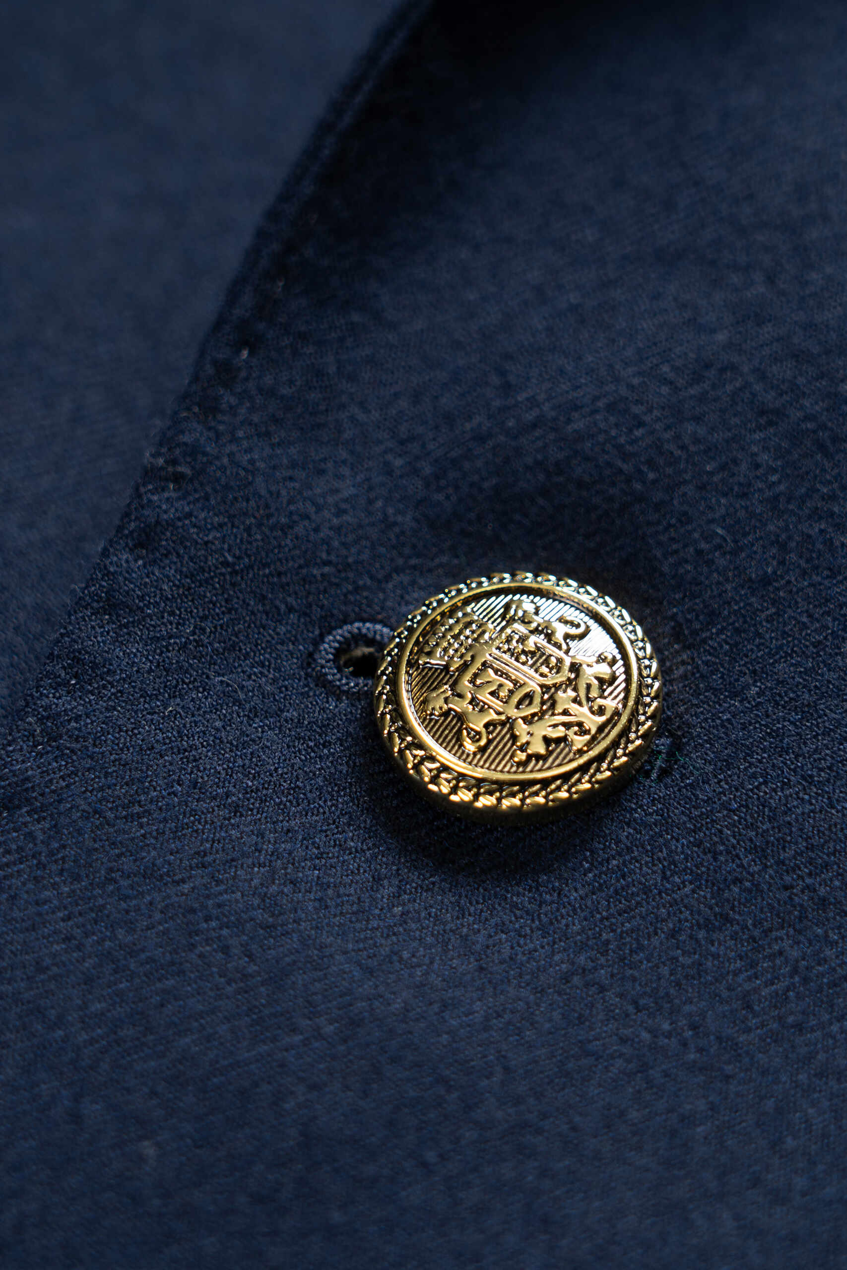 The perfect navy blue blazer to add to your wardrobe is a fine navy flannel blazer made with quality 100% Italian Vitale Barberis Canonico wool. A AW19/20 single-breasted navy blazer (YY038) half-canvas, natural shoulder with metal embossed buttons, the latest cut and contemporary, slim fit. Breathable Bemberg lining, surgeon cuffs, double side vents and waterdrop pen pocket. Warm, tailored and versatile, this blazer is great for business, formal, and smart occasions during the autumn and winter.