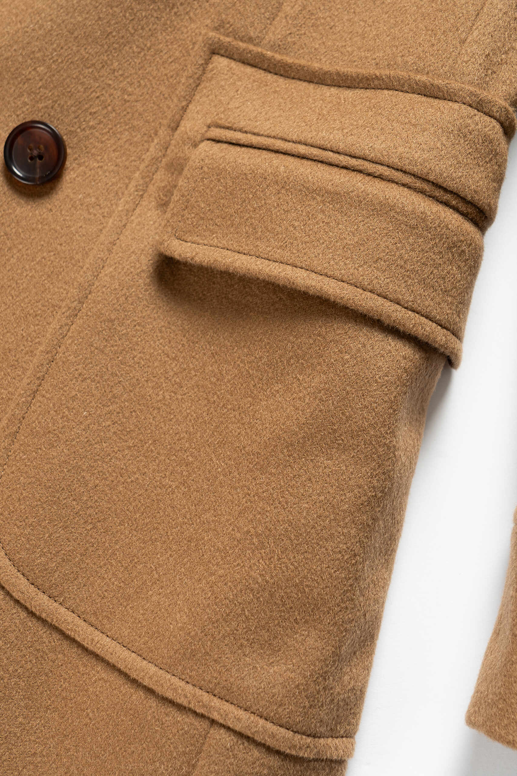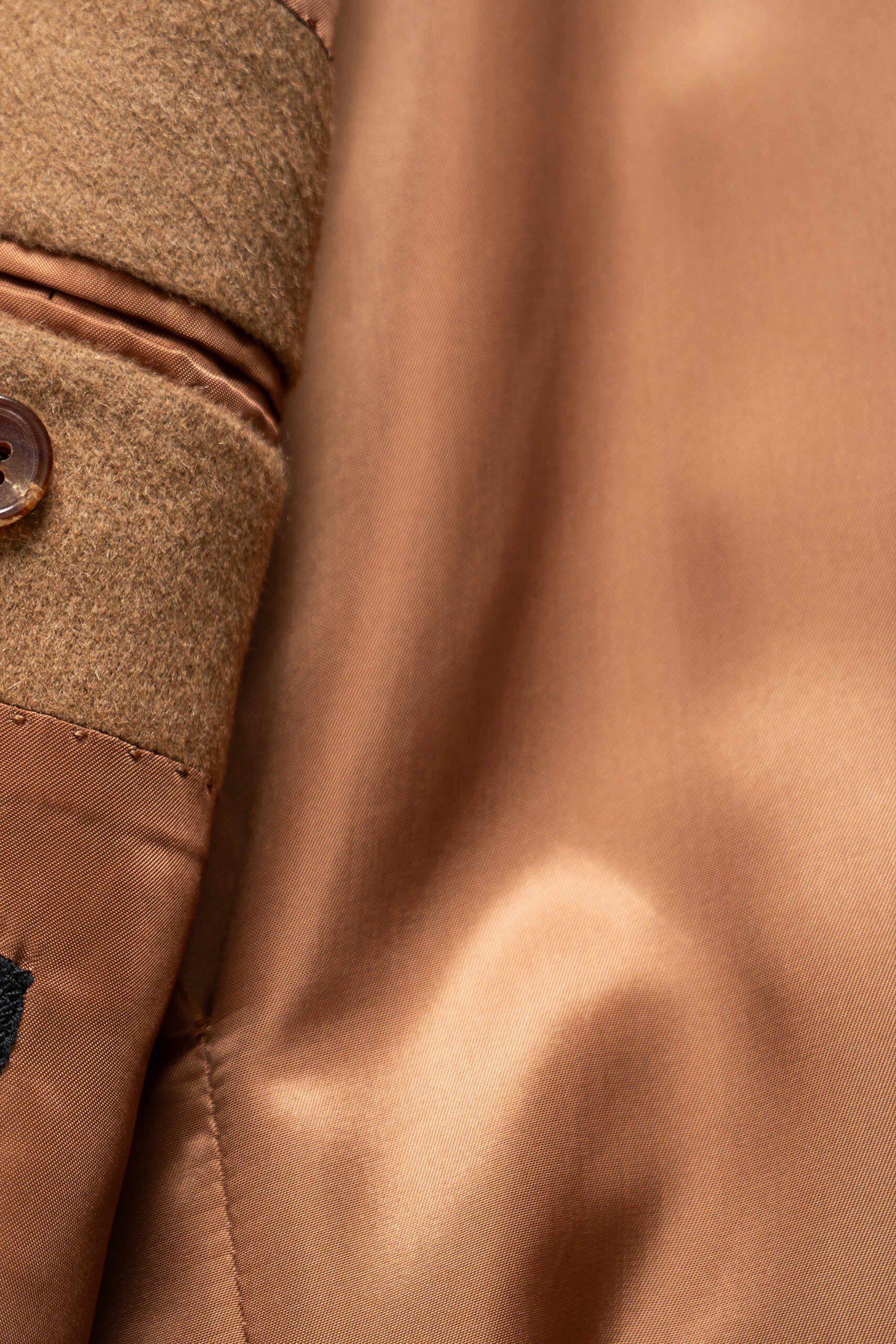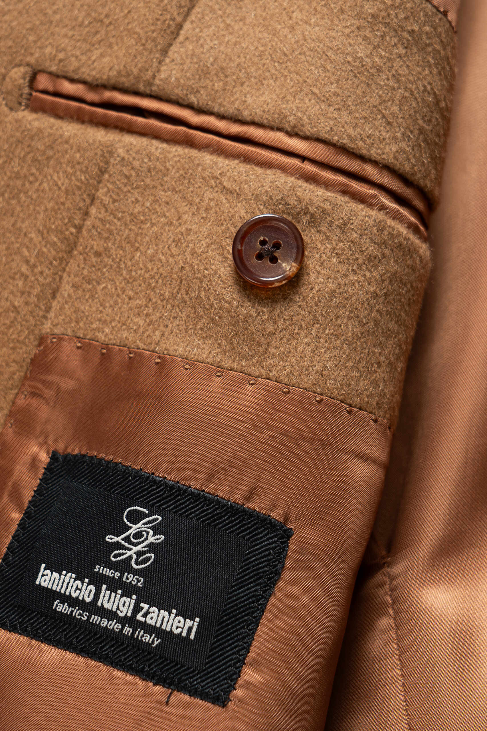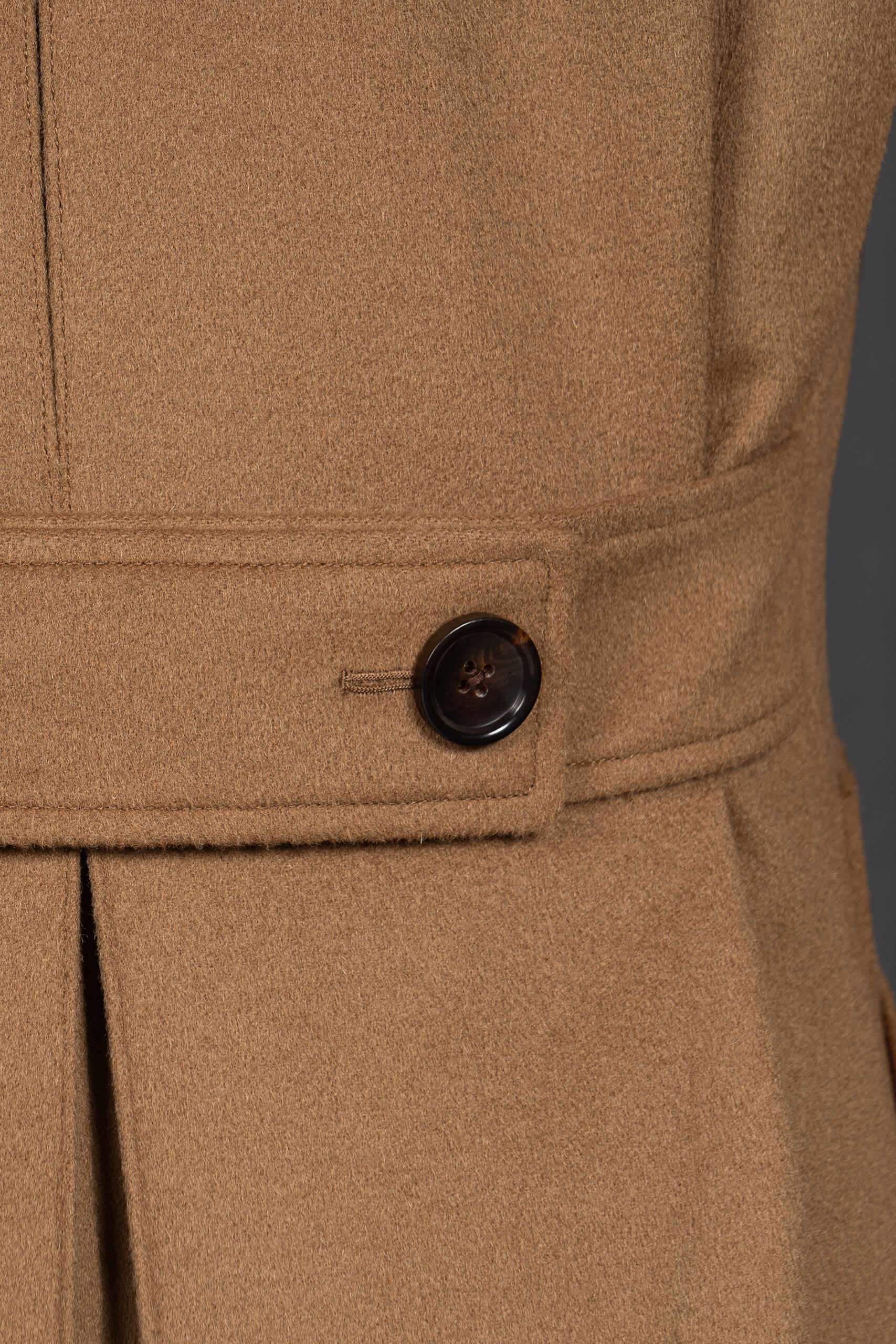 The Classic Italian Camel Polo Coat is crafted to perfection, combining luxury with timeless style. Expertly made from a premium Italian fabric blend of 80% wool and 20% cashmere (500g), this coat delivers exceptional warmth, softness, and comfort. Designed with a half-canvas construction, it offers a structured yet relaxed silhouette. Refined coffee horn buttons, elegant shirt-style sleeves with horseshoe cuffs, and a center-back vent complete this classic, versatile piece, ideal for formal occasions or upscale casual settings.