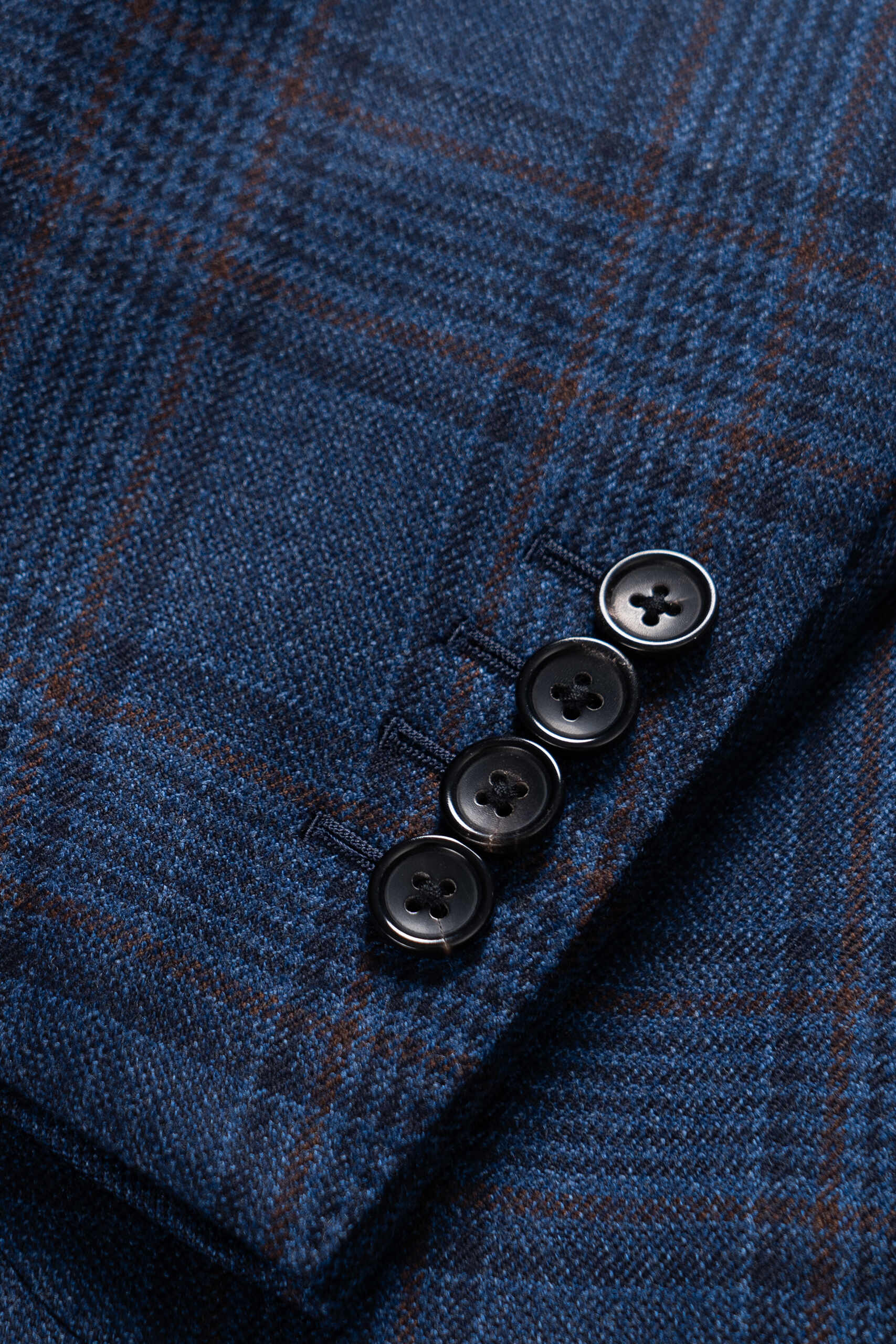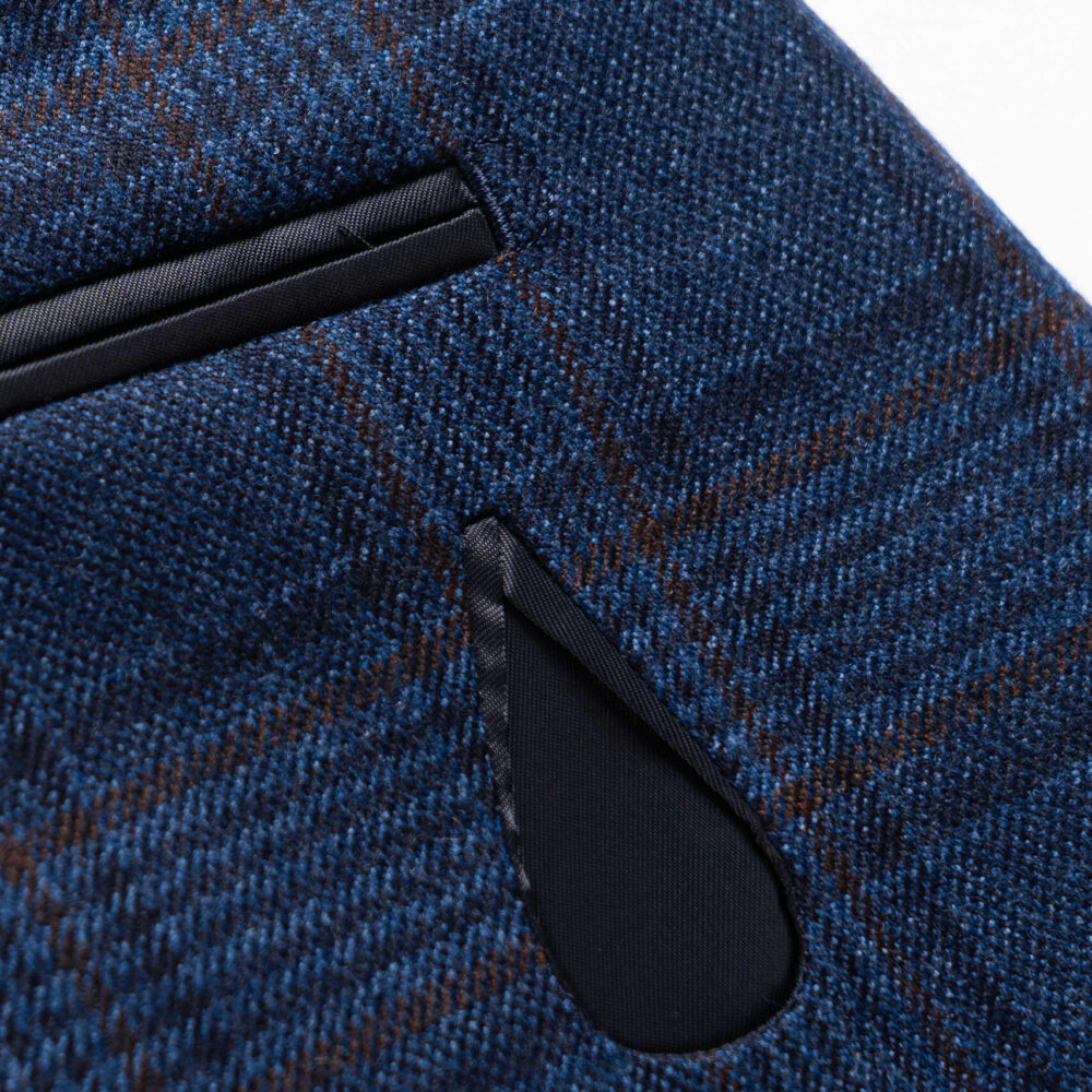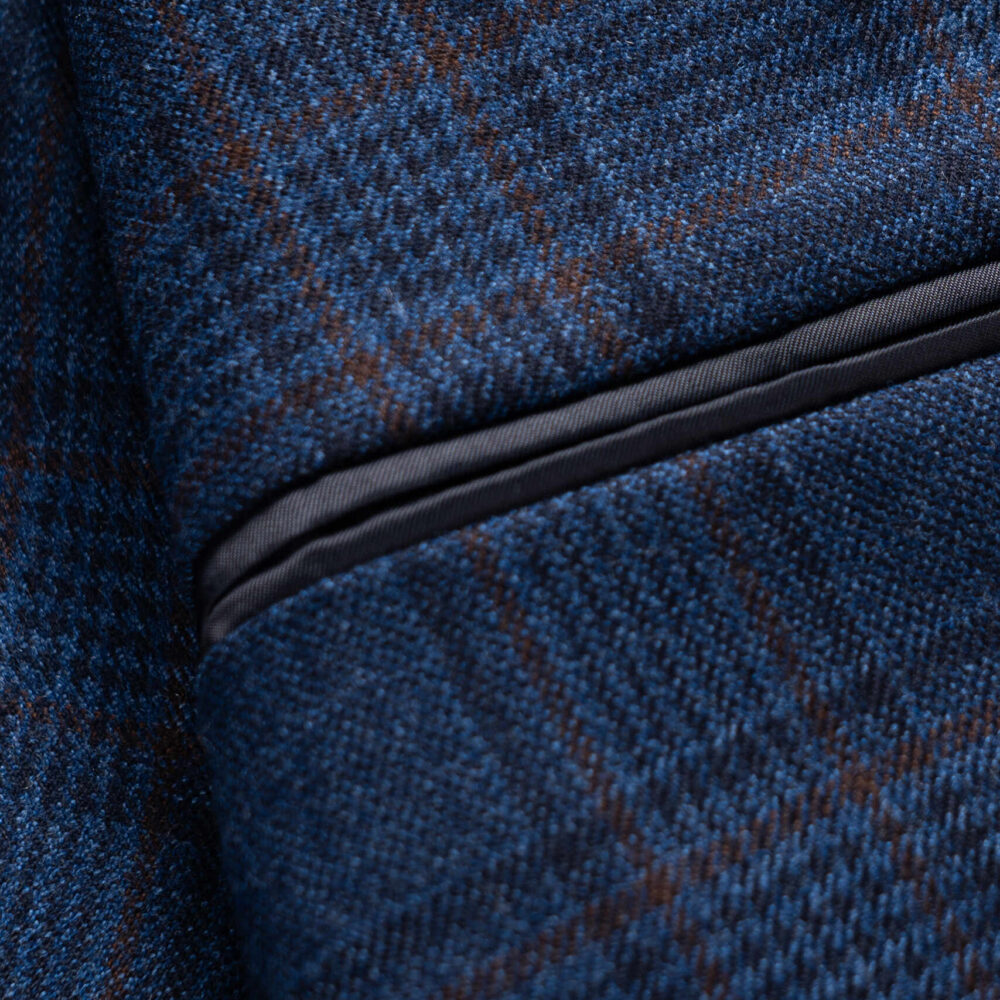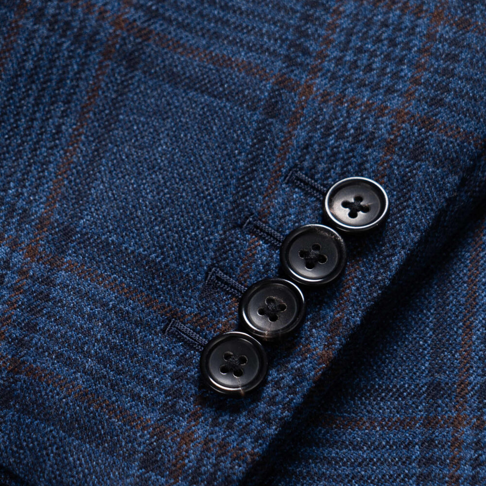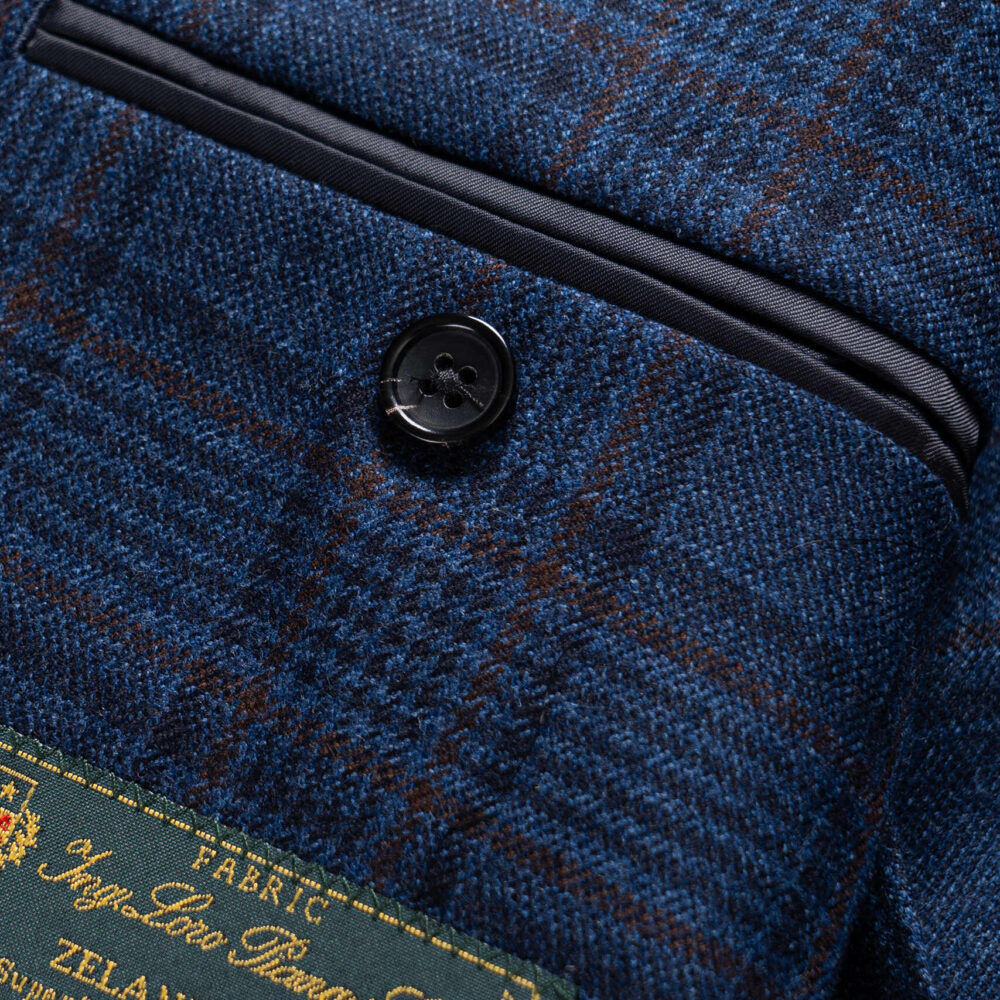 Experience the perfect blend of Italian craftsmanship and modern tailoring with the Loro Piana Blue Plaid Suit. Meticulously crafted from 100% Italian wool, this blazer features a half-canvas construction that balances structure and comfort. Black horn buttons add a refined accent, while the side vents and shirt-cuff sleeves ensure both style and ease of movement. Bemberg lining provides a smooth, breathable feel, and the teardrop-shaped pen pocket exemplifies thoughtful functionality.