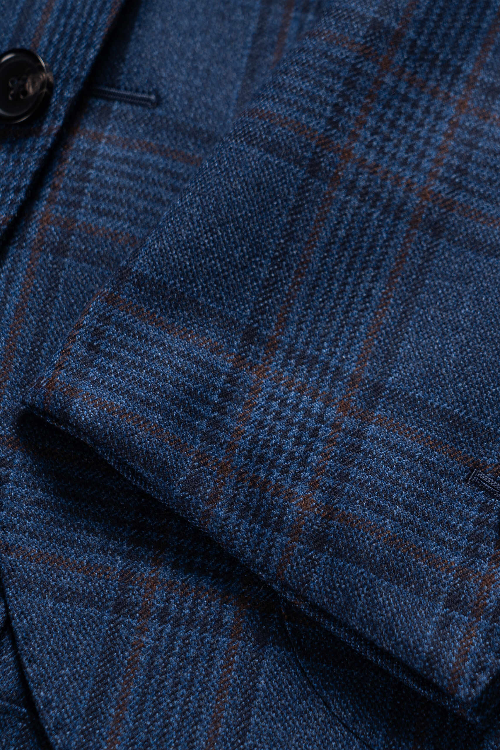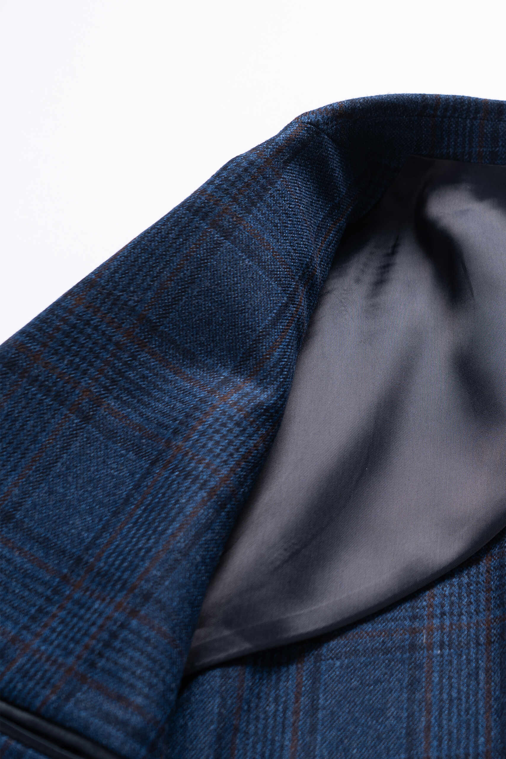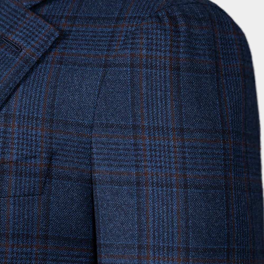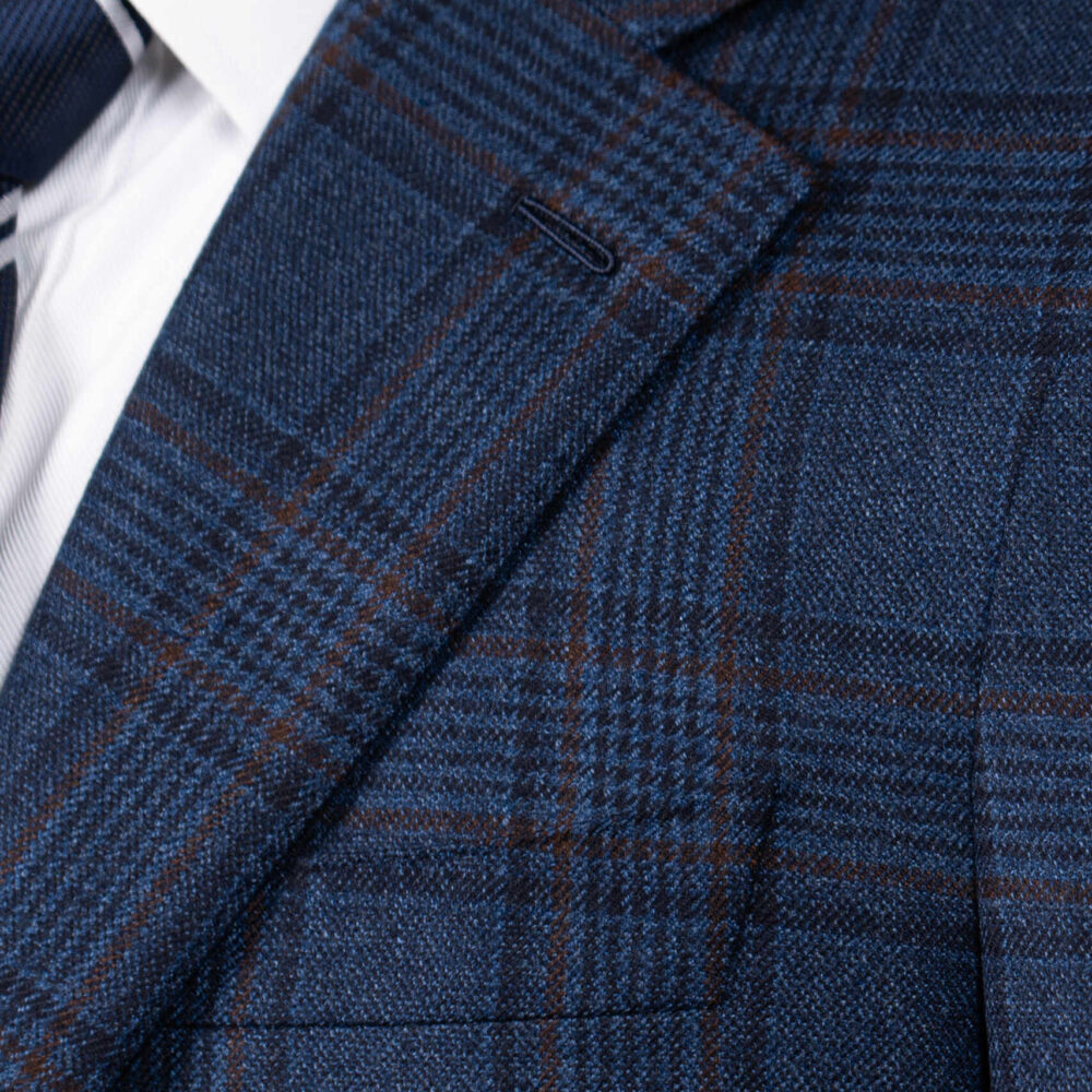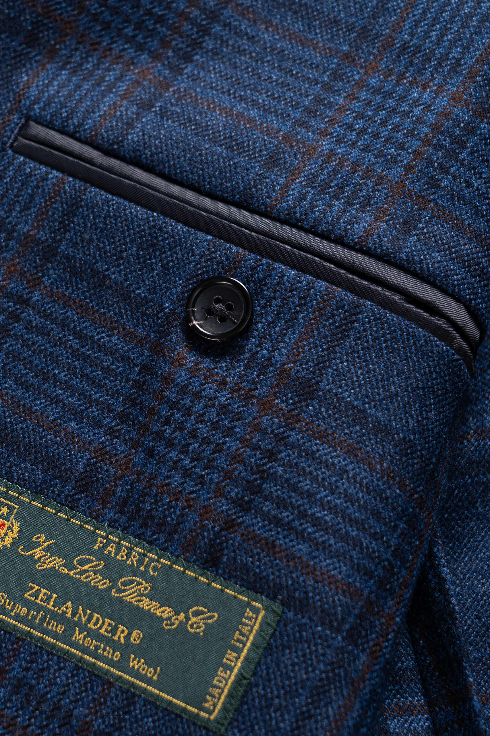Experience the perfect blend of Italian craftsmanship and modern tailoring with the Loro Piana Blue Plaid Suit. Meticulously crafted from 100% Italian wool, this blazer features a half-canvas construction that balances structure and comfort. Black horn buttons add a refined accent, while the side vents and shirt-cuff sleeves ensure both style and ease of movement. Bemberg lining provides a smooth, breathable feel, and the teardrop-shaped pen pocket exemplifies thoughtful functionality.