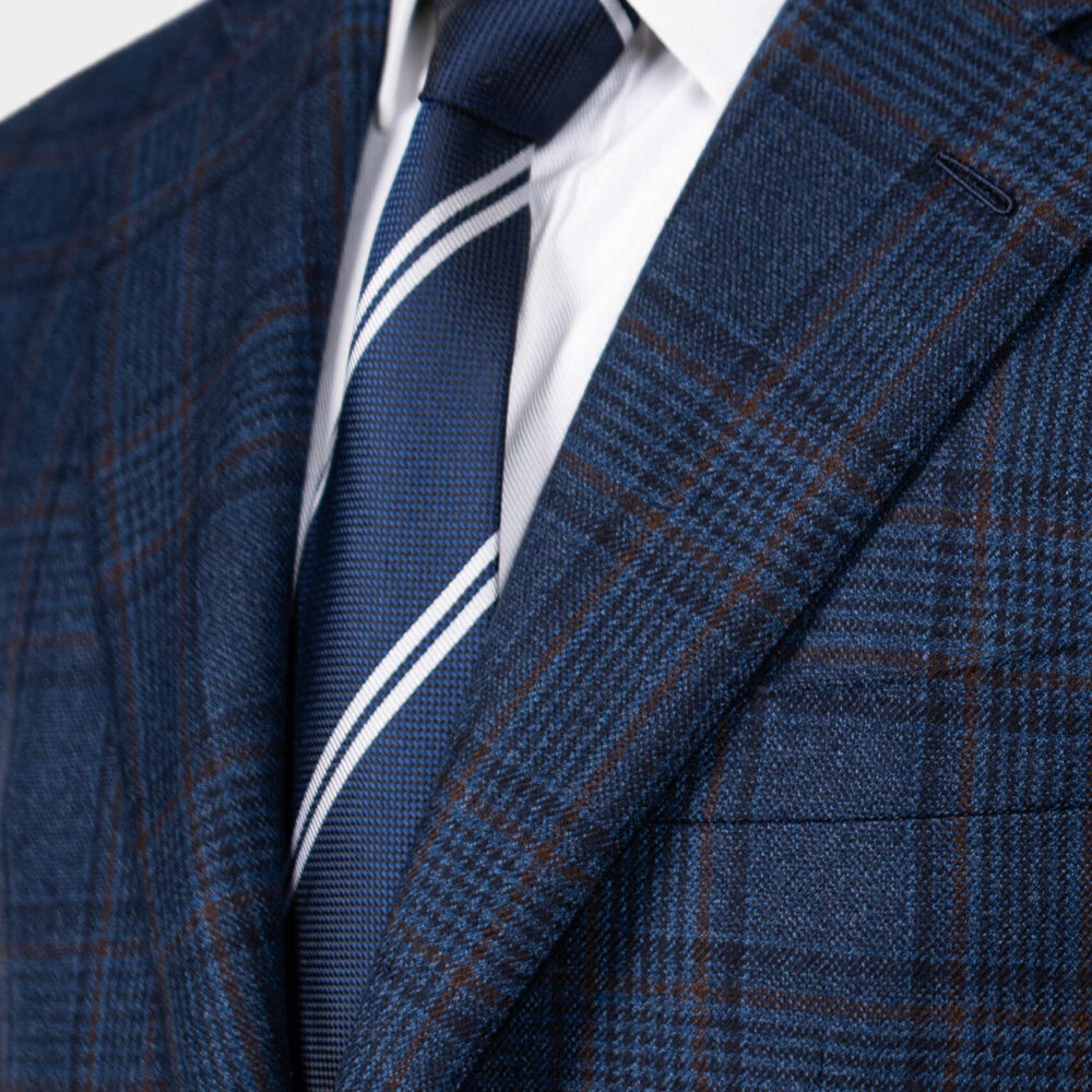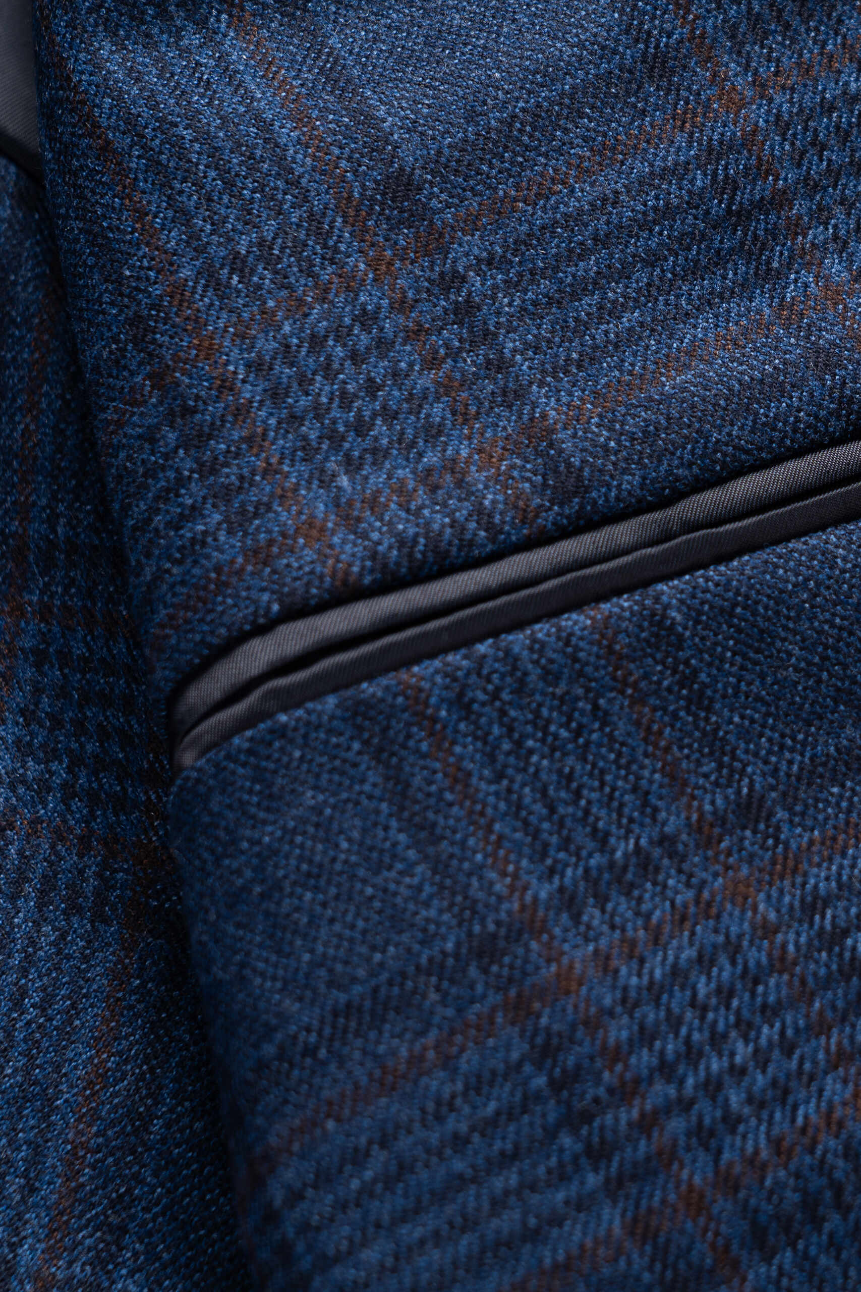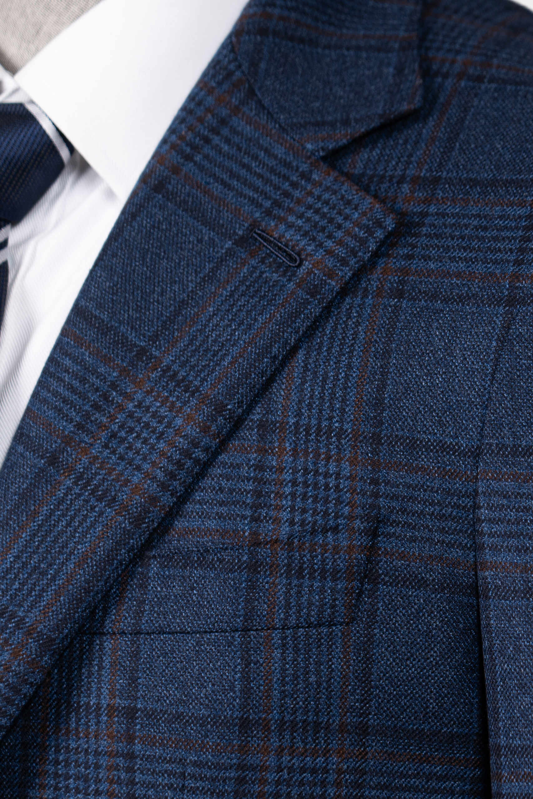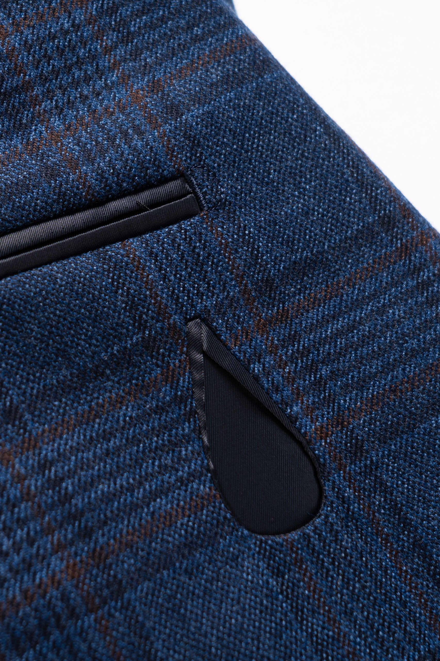 Experience the perfect blend of Italian craftsmanship and modern tailoring with the Loro Piana Blue Plaid Suit. Meticulously crafted from 100% Italian wool, this blazer features a half-canvas construction that balances structure and comfort. Black horn buttons add a refined accent, while the side vents and shirt-cuff sleeves ensure both style and ease of movement. Bemberg lining provides a smooth, breathable feel, and the teardrop-shaped pen pocket exemplifies thoughtful functionality.