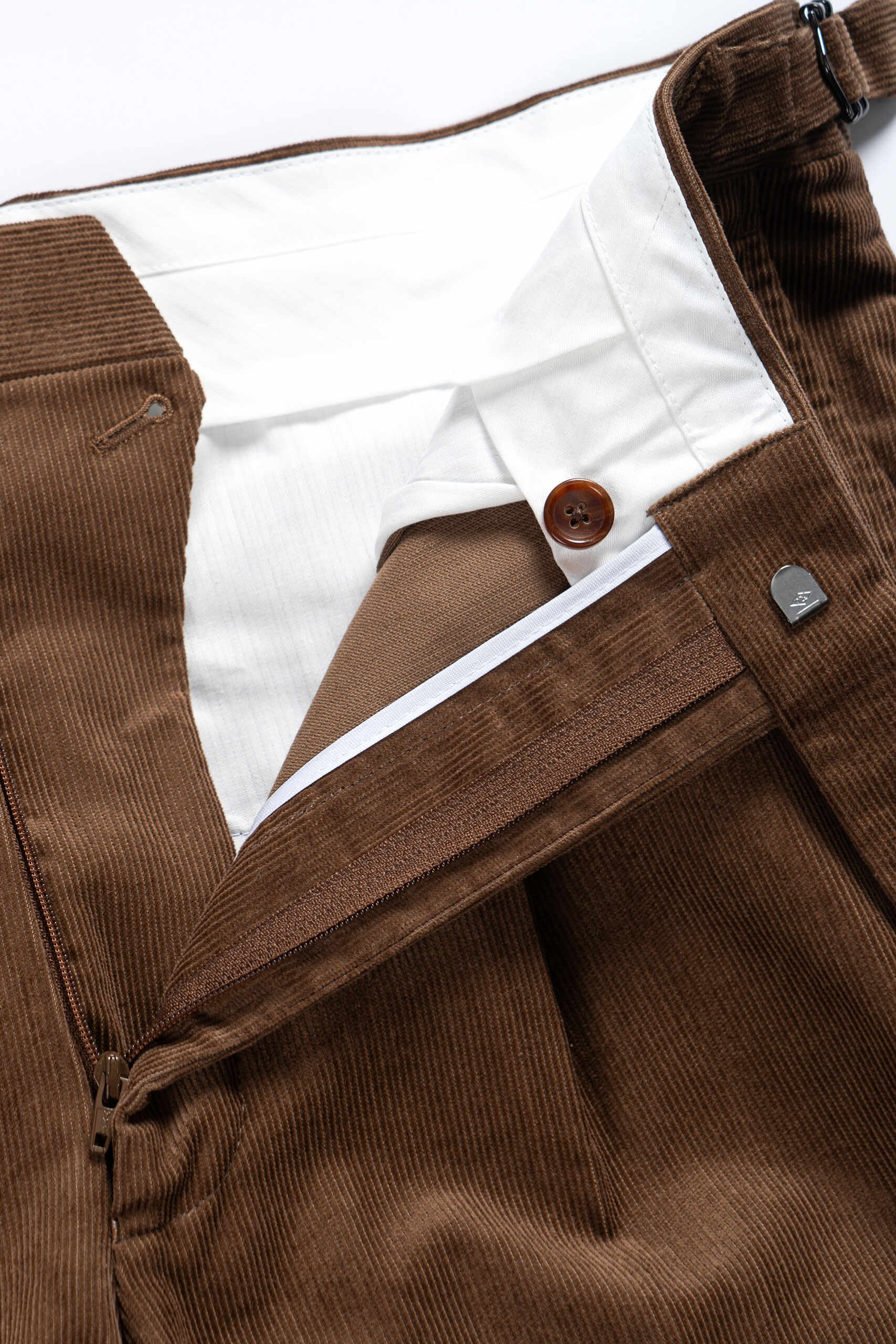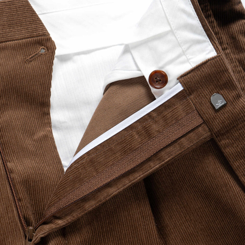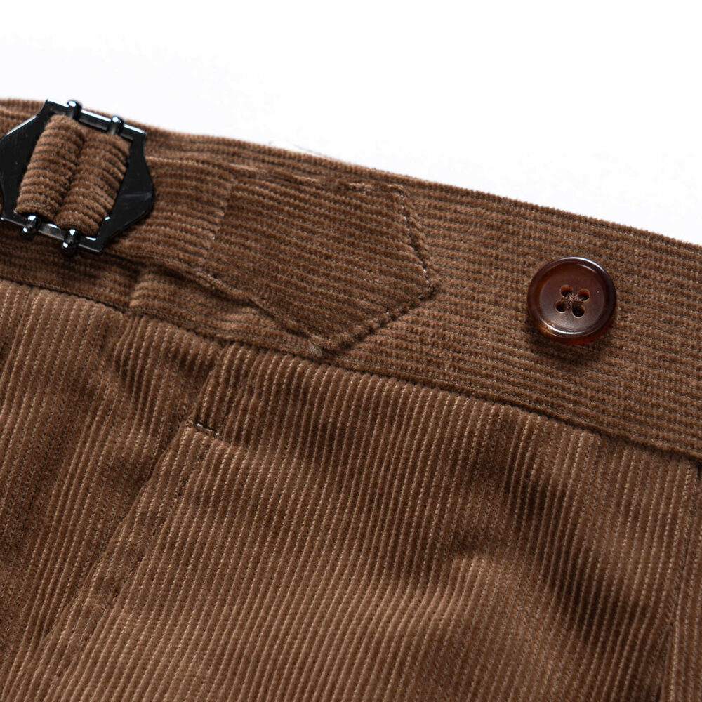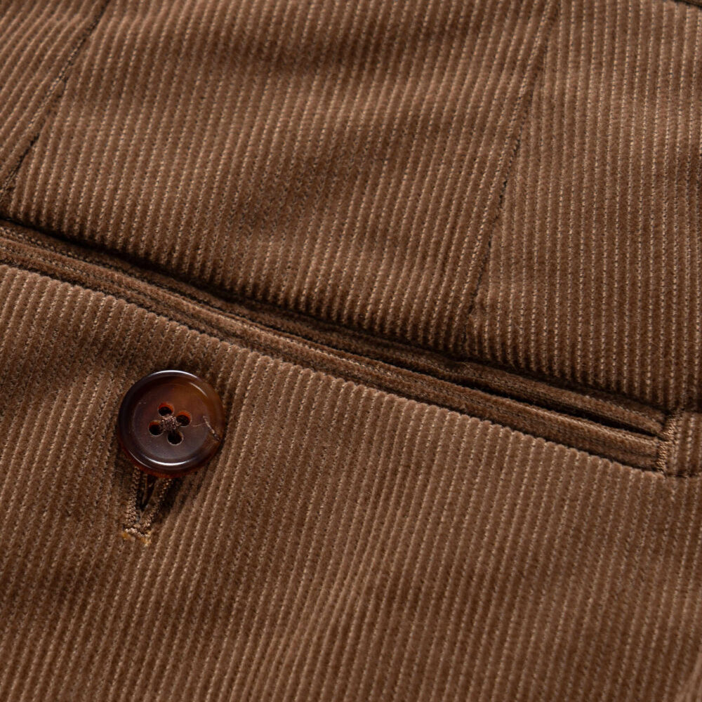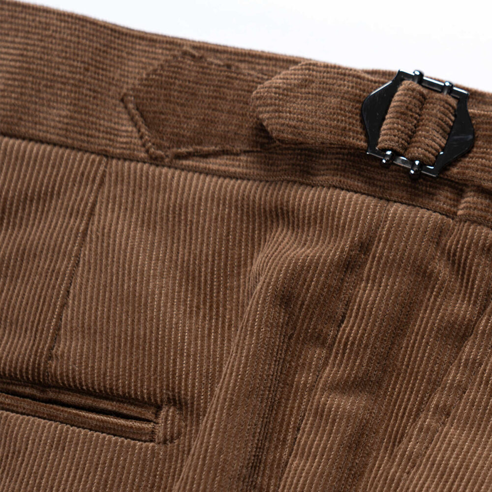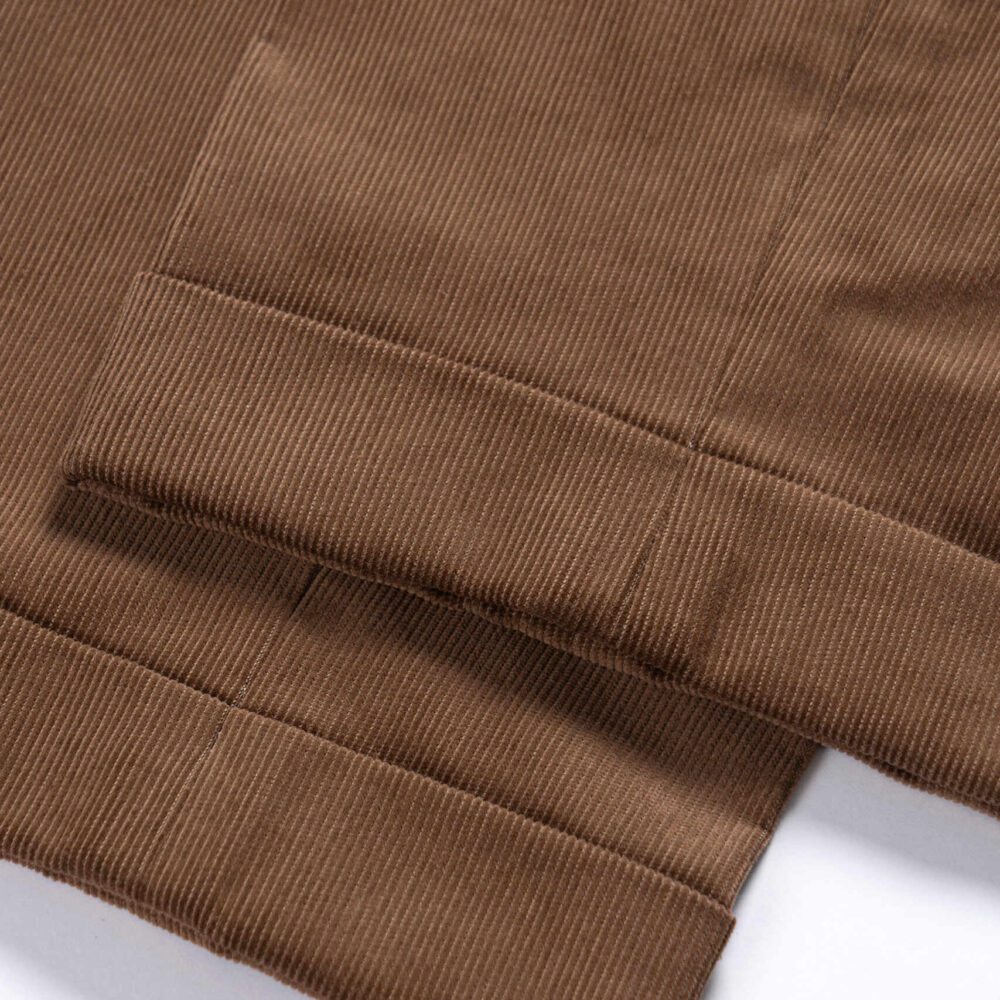- Rich brown corduroy texture lends a timeless charm, suitable for both formal and smart-casual outfits.